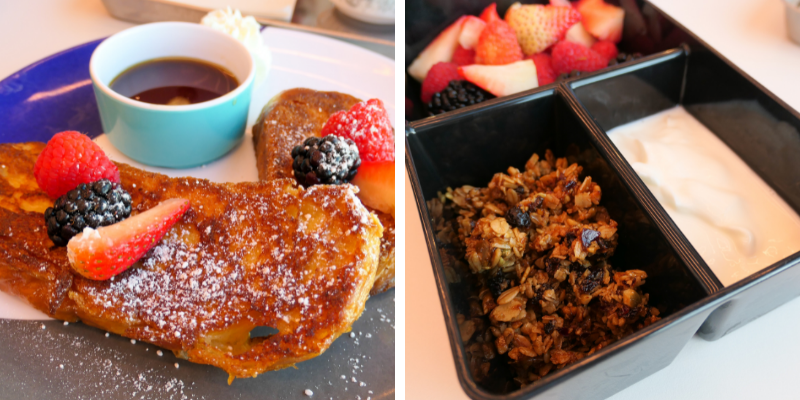 We started our morning at The Galley which is the dining hall. It’s a seat yourself situation and we found a table right next to a window and near coffee. Our server came by promptly to take our order. Brian ordered avocado toast with a berry bento box and I ordered French toast and also the same bento box. The food was ready incredibly fast and the French toast was amazing. It had that golden brown to it indicating it was fried to perfection. The bento box contained Greek yogurt, granola, and mixed berries each in their own compartment. The bento box was clearly pre-made and it was served to us with the Saran Wrap still on it with the good by date on it too. I didn’t care for it. The strawberries were more white than red and the yogurt was almost bitter. Nothing like the sweet Oui yogurt I normally eat. I also ordered a mocha. It was crafted with care with a leaf design on top. The mocha was made with Hershey syrup, which was a disappointment for me. (For whatever reason, Hershey syrup bothers my throat on the way down.)