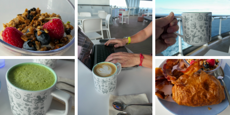 The day began with wellness in mind. I headed up to the perch which is on Deck 17 at the back of the ship for Open-Heart Slow Flow Yoga. All of the yoga classes were booked at the beginning of the cruise, but people changed their minds and I was able to snag a spot here! The instructor was clearly yoga trained and not only knew about the physical poses of yoga, but also about the spiritual element of yoga. In this class, we worked on opening our chests and hearts and focused on one of the chakras. It was a gentle wake-up for the day and left me feeling revitalized.