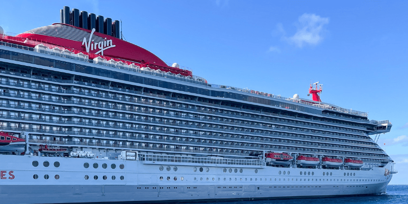 Each sailing on Virgin Voyages includes a Scarlet Night where all passengers and crew are encouraged to wear red. Tonight was Scarlet Night. What I LOVE about this cruise line is the complete lack of dress code. It rubs me the wrong way when a resort or cruise line REQUIRES you to dress-up. Maybe it’s because of years of catholic school and uniforms, or maybe it’s because I’m very picky about comfort, but being forced to dress-up isn’t my idea of a good time. Ironically, I did buy a red dress for tonight, but I didn’t HAVE to wear it.