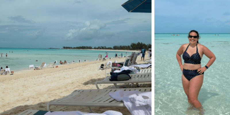 Castaway Cay is Disney’s private island. The water surrounding the ship was that aqua-blue color found in the Caribbean. It was an easy walk to the tram station and we loaded shortly after arriving. We decided to go to Serenity Bay which is the adult-only section of the island. We rode the tram to the main area and then got off to hop on another tram that took us the rest of the way. This truly was an adult-only area. No children within sight and none that could be heard either. It was the furthest area from the ship and a parent’s retreat. There were plenty of loungers and umbrellas for everyone and lots of chairs as well that many took to the shoreline. The beach was shallow and remained shallow all the way to the buoy. We saw fish, pelicans, and even a very large starfish! I overheard someone say they saw a stingray as well. It was just enough wildlife to remind you that this is nature, but not enough you wanted to leave the water. I know the majority of people love snorkeling and seeing colorful fish but that is not my thing. I’ve come across too many fish that didn’t understand boundaries. The water was crystal clear and we could see our feet the whole time which was amazing. No surprise fish kisses! ![]()