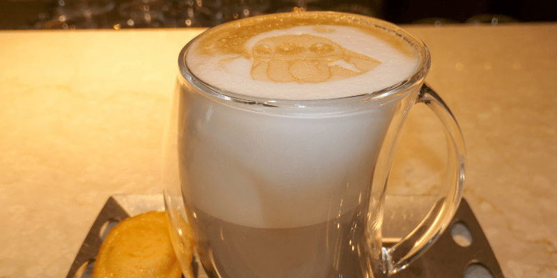 The coffee onboard is excellent and we used this opportunity to order a specialty coffee from my favorite area of the ship: Cove Cafe. This is in the adult-only section of the ship and is the coffee shop. The coffee shop with the most alcohol I’ve ever seen! I ordered the Salted Caramel Coconut Latte served hot and it was adorned with an image of Stitch in the foam. It’s the little things in life and characters in my coffee puts a giant smile on my face every time.