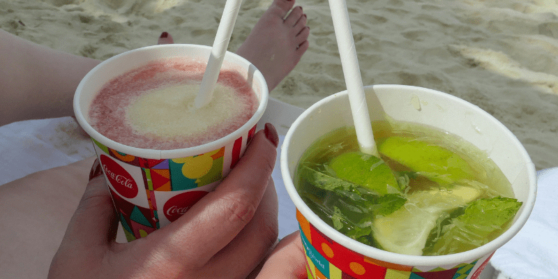 We spent most of the time on the loungers. Hilary read while I wrote. There were servers on the beach and they were readily available for orders. Hilary had a Pina Colava and I had a Mango Mojito. The drinks were served in a paper cup, the same kind used at Disney World, and were strong.