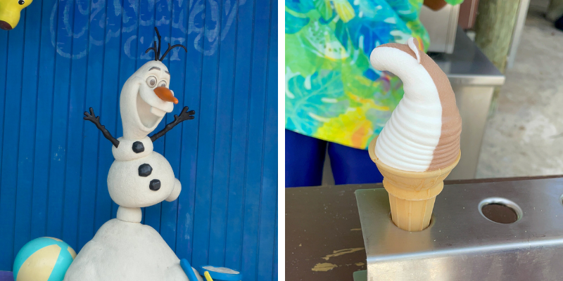 Dark clouds began to roll in so we packed up. We made our way to the food area where Caribbean bbq was served. This area was here on Serenity Bay, but I assume there is a second location near the main beach too. I skipped the lunch because Caribbean food is also synonymous with allspice, my arch nemesis. Our waiter last night offered to put in an allergy-friendly option for me but I passed on the offer. Meals are huge on cruise ships with several courses so skipping lunch is not a big deal. We did grab a soft serve ice cream though. The cast member filled the cones and then placed them into a cone holder where we could grab it. It made me wonder why Disney World had yet to adopt the advanced technology of cone holders for their ice cream. (Disney World is not serving cones. Only cups or cups with a cone on top.)