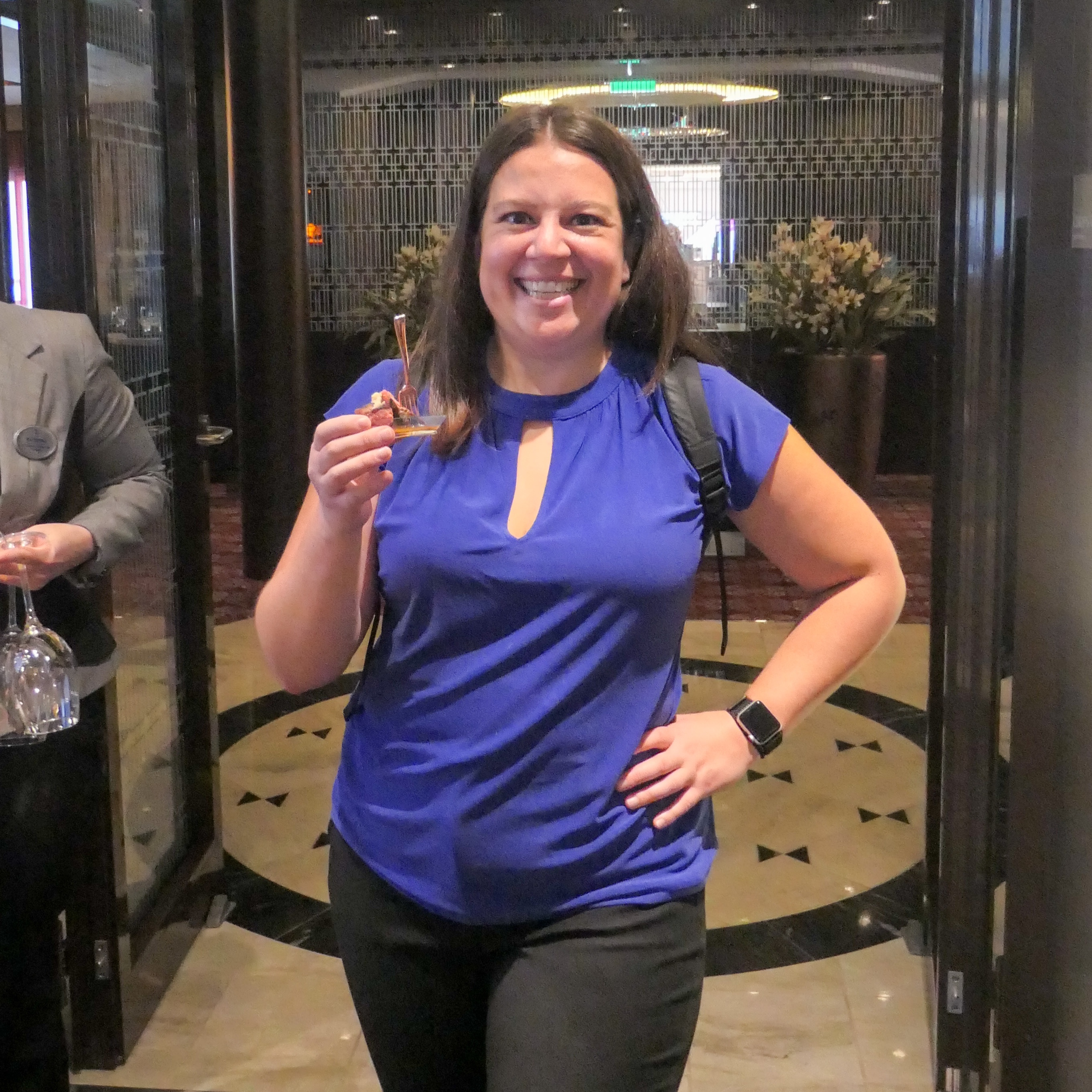 I started off the morning with a yoga class in the Vitality Fitness Center. The fitness center on this ship was setup very different from the last ship I was on. The entrance is somewhat discreet, but it’s that discreetness that also makes it feel welcoming. There wasn’t anyone guarding the door ready to sell you something. I simply walked in and looked away for the yoga area. The class was down a few steps at the front of the fitness center on the wall that faces the front of the ship. While it was at the front, the step down made it feel like we were in our own private room and not like we were front and center of the ship. I practice yoga about twice a week at a studio back home and have done yoga for several years. I’m officially a yoga snob and this class fell short of expectations. The instructor was a personal trainer at the fitness center, but she had limited yoga training. The class was fine and if you don’t practice yoga regularly you probably wouldn’t know that. She also had a strong accent which made it hard to follow along. The mats were also fitness mats and not yoga mats and were about 18 inches shorter than a yoga mat. I’m happy I got some movement this morning, but the class wasn’t worth the hefty $23 price tag.