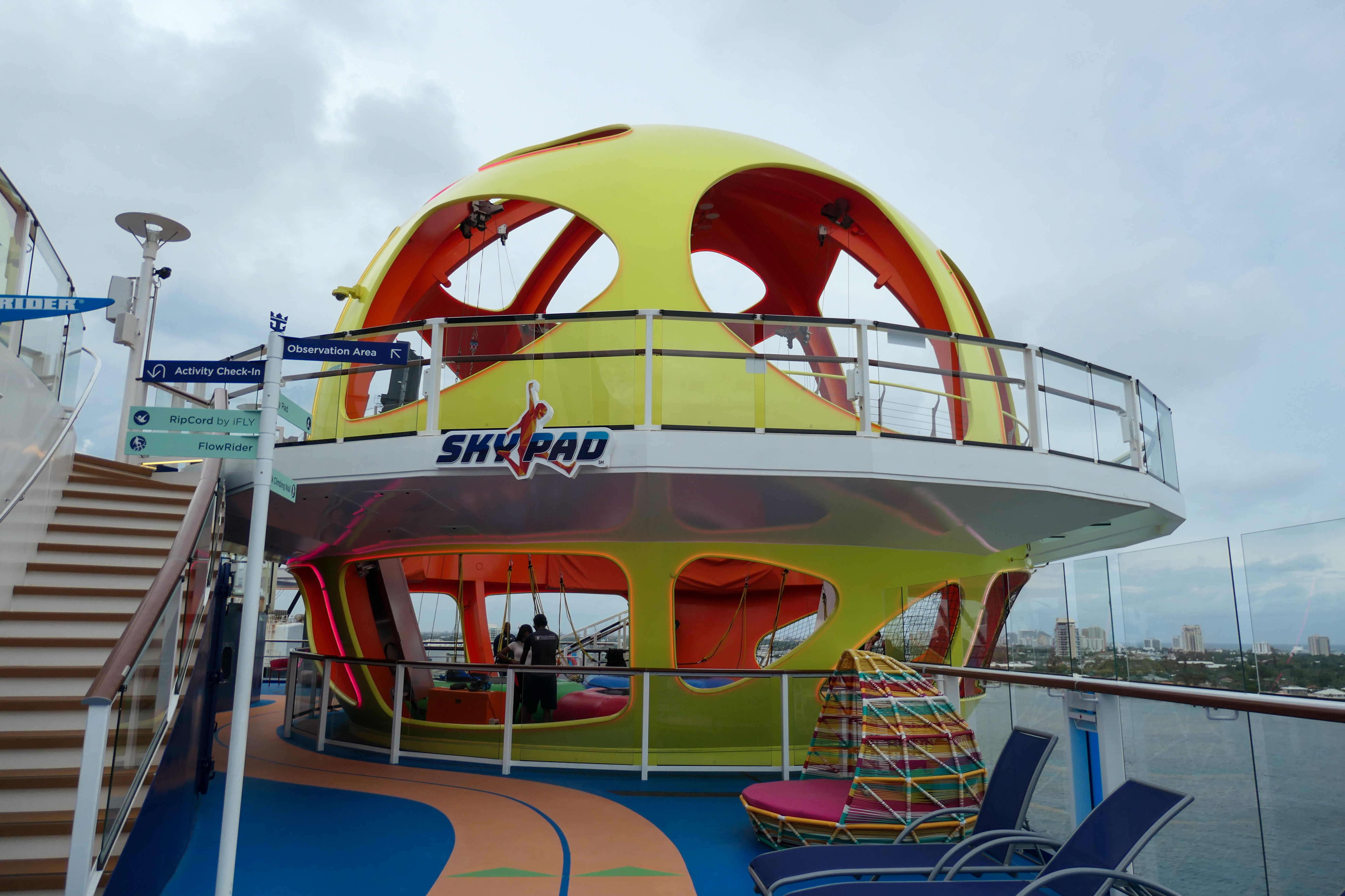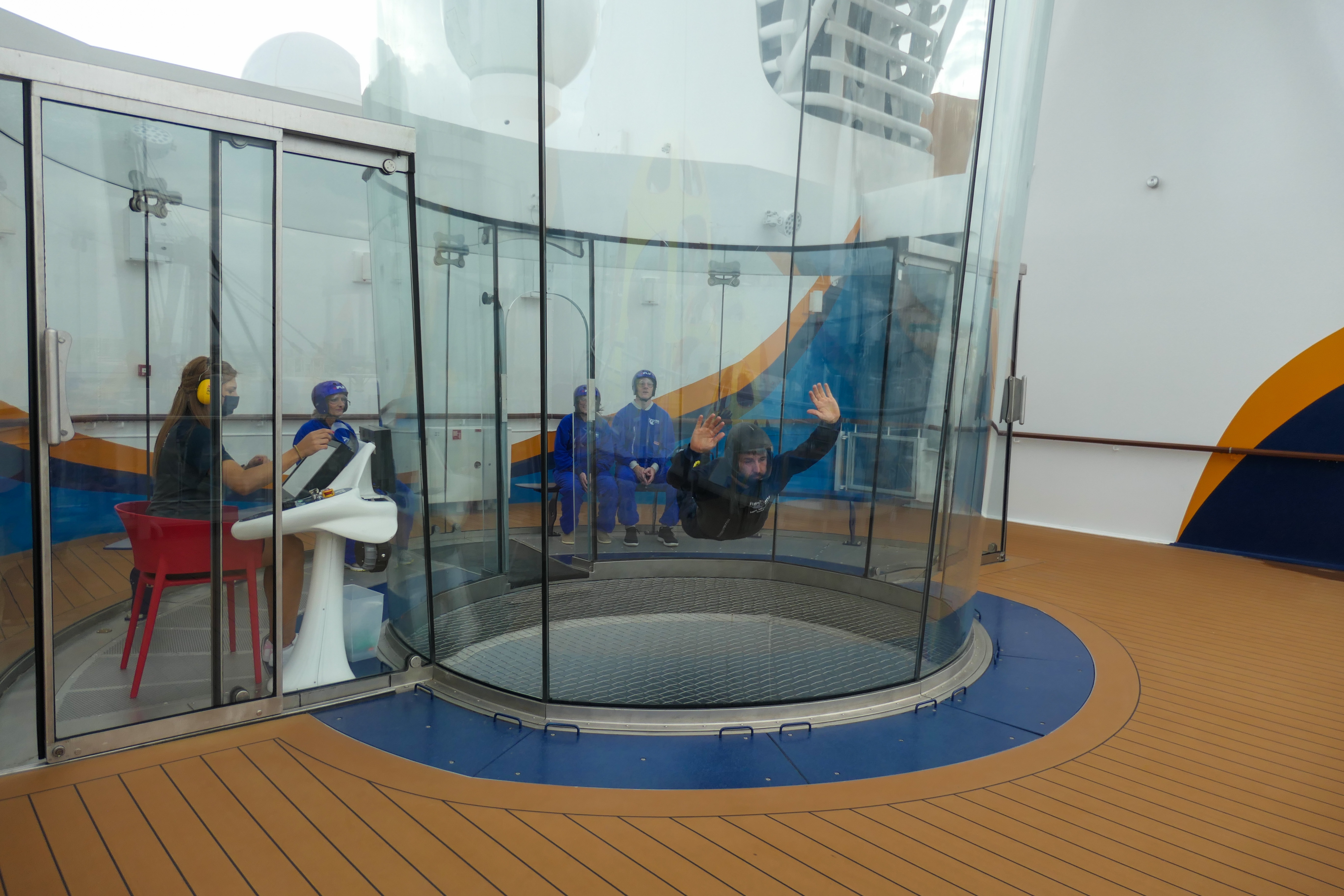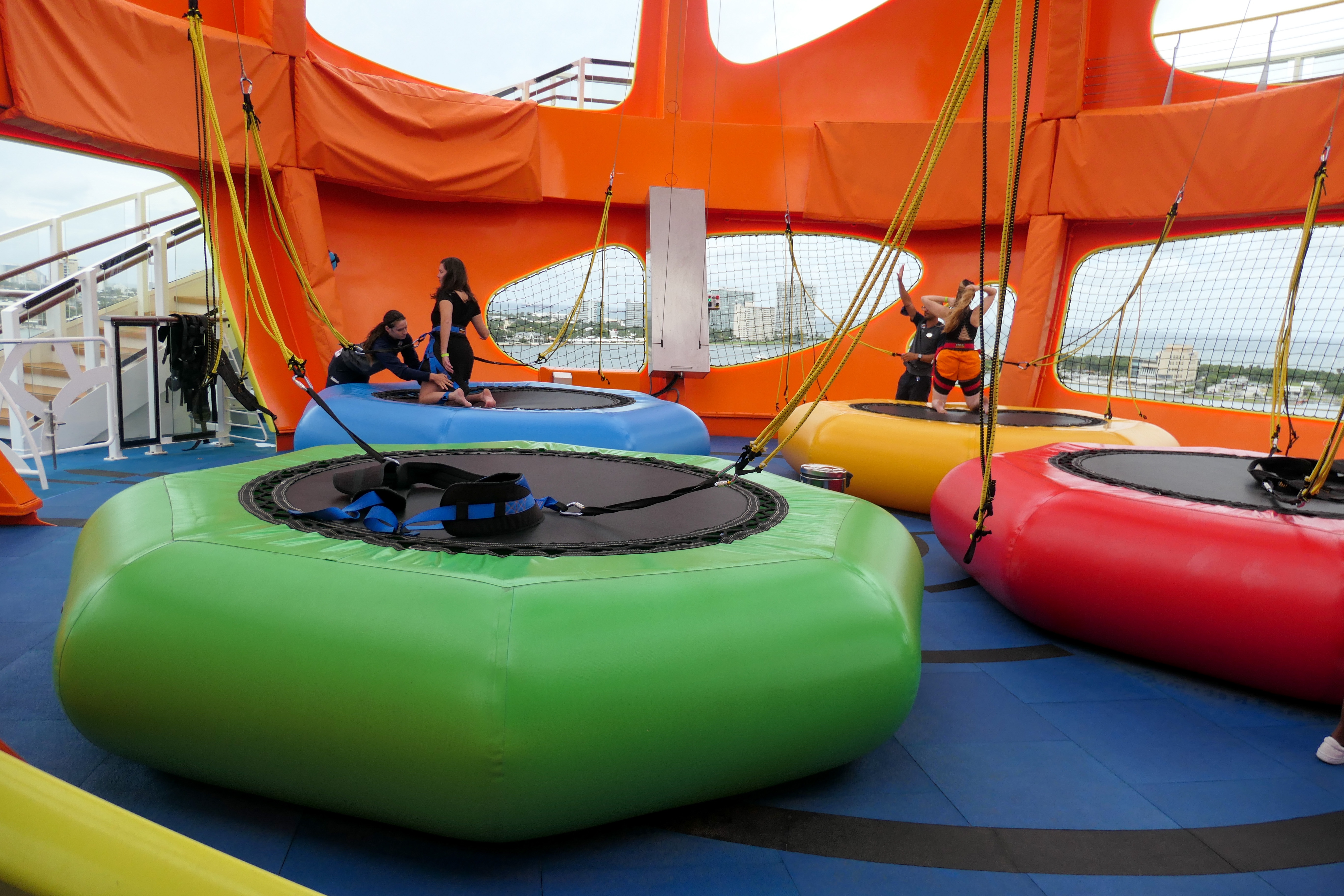 After warming up in my cabin, I looked at the activities onboard and realized there was a lot left to try. I headed over to the SeaPlex where a pickle ball tournament was happening. I’ve never played pickle ball and I didn’t have a doubles partner so I was just a spectator this time around. After awhile, I decided to checkout the views from the top deck. This brought me near the SkyPad and I decided to give the trampolines another go, but this time with the virtual reality headset. I actually found the experience easier with the headset. I played one of the VR games and after a couple minutes decided I was done with physical activity.