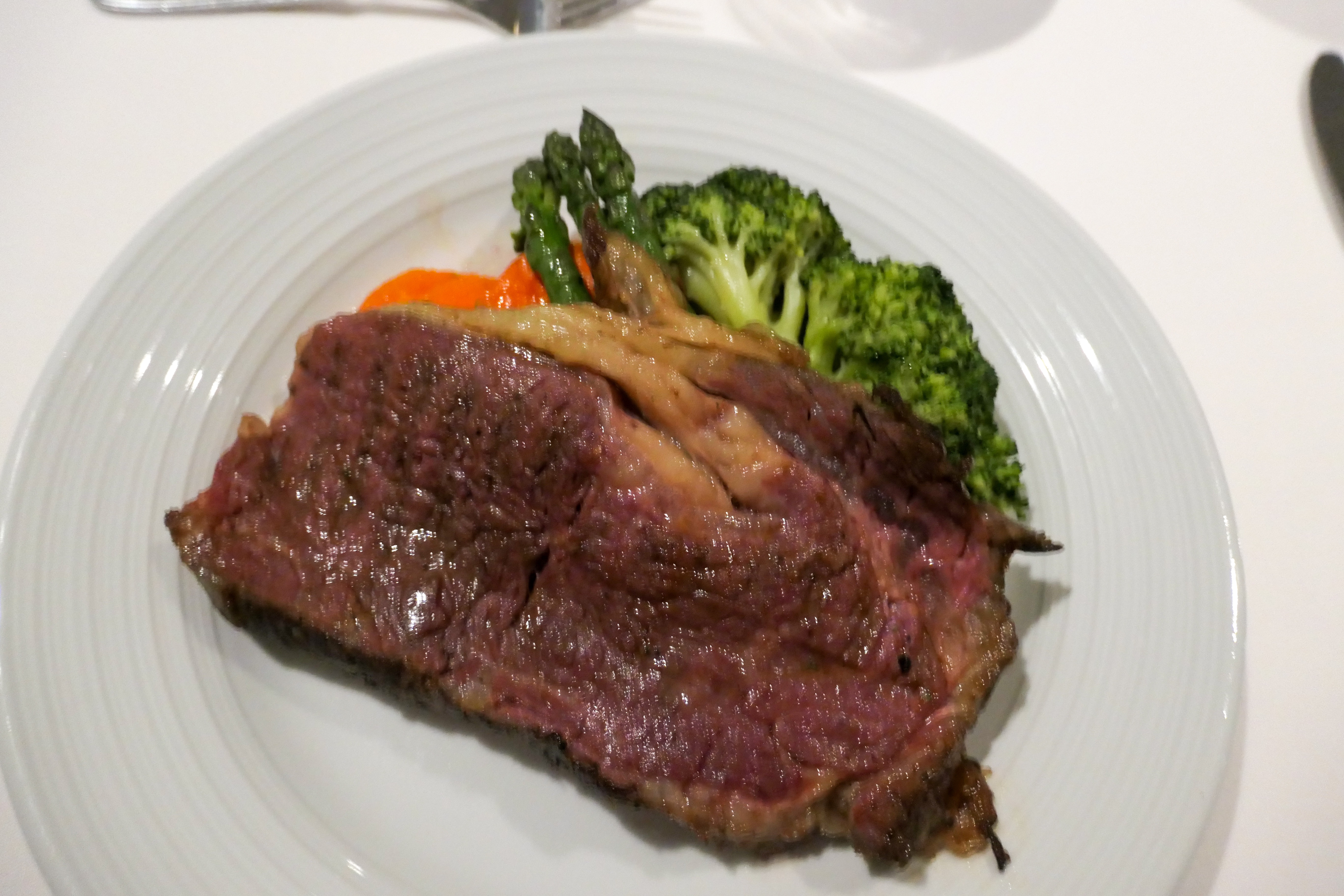 Dinner was next and I ordered grilled chicken with carrots and spinach. Probably not the tastiest option available but I needed to balance out the extra snack and things. I also started the meal with a wedge salad and capped it off with crème brûlée.